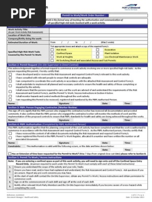 Permit To Work Form Updated Pdf Occupational Safety And Health Risk